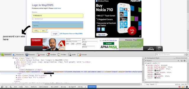 1. Right-click the password box and select "Inspect Element."This brings up the developer console